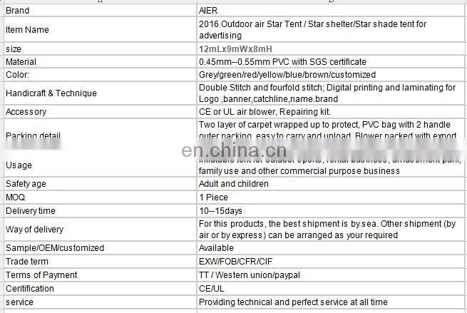 2016 Germany Advertising Inflatable Tent Manufacture China Best Choice Wholesale