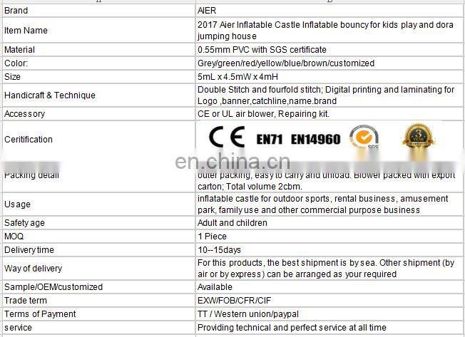 2017 Aier Inflatable Castle Inflatable Bouncy for Kids Play and Dora Jumping House