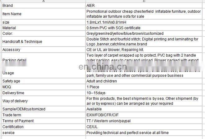 Promotional Outdoor Cheap Chesterfield Inflatable Furniture, Outdoor Inflatable Air Furniture Sofa for Sale