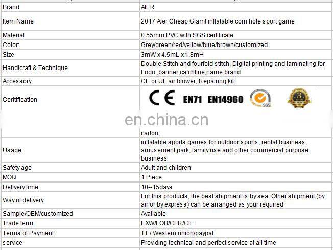 2017 Aier Cheap Giamt Inflatable Corn Hole Sport Game