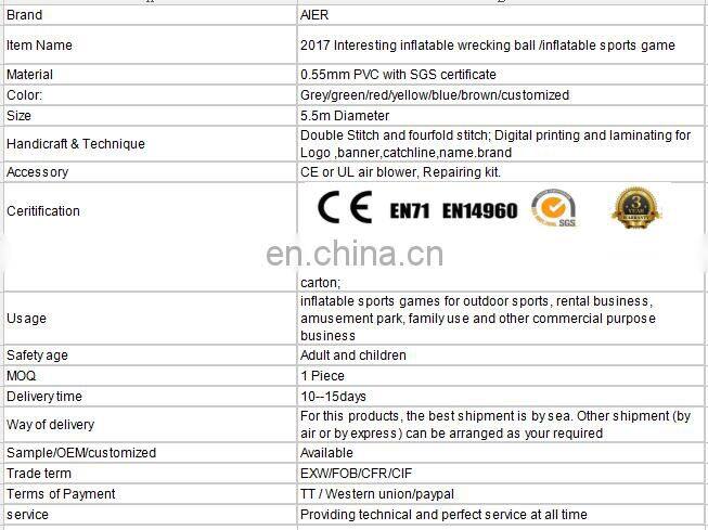 2017 Interesting Inflatable Wrecking Ball /inflatable Sports Game