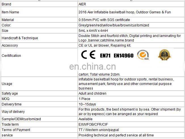2016 Aier Inflatable Basketball Hoop, Outdoor Games & Fun