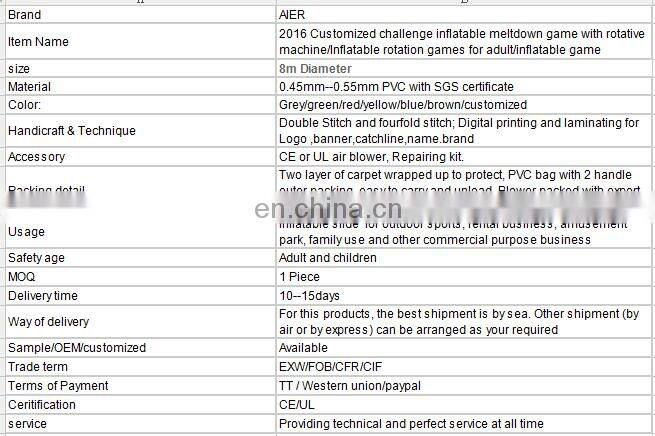2016 Customized Challenge Inflatable Meltdown Game With Rotative Machine/Inflatable Rotation Games for Adult/inflatable Game