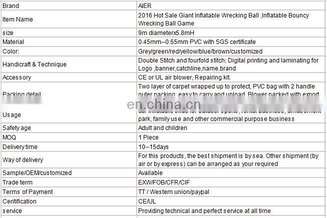 2016 Hot Sale Giant Inflatable Wrecking Ball ,Inflatable Bouncy Wrecking Ball Game