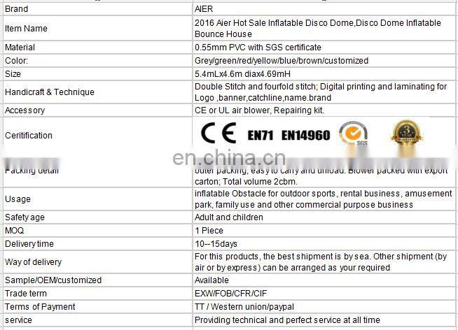 2016 Aier Hot Sale Inflatable Disco Dome,Disco Dome Inflatable Bounce House