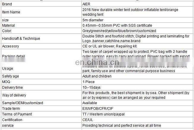 2016 New Durable Winter Tent Outdoor Inflatable Tent/orange Wedding Tent