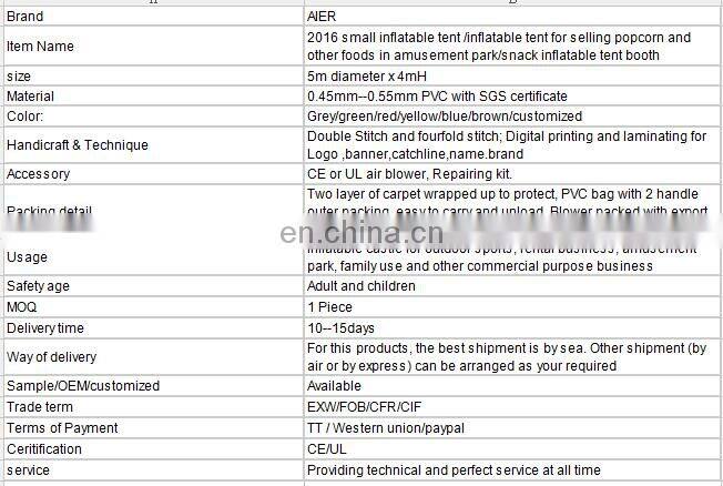 2016 Small Inflatable Tent /inflatable Tent for Selling Popcorn and Other Foods in Amusement Park/snack Inflatable Tent Booth