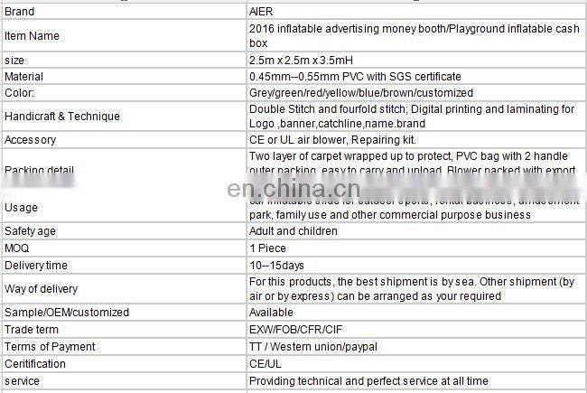 2016 Inflatable Advertising Money Booth/Playground Inflatable Cash Box
