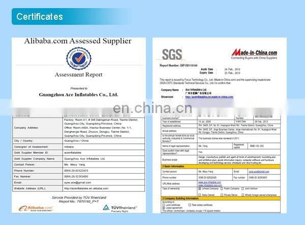 Ace Inflatables Ltd. has many years' experience in the inflatables field. We devoted to make the best inflatables with our best service. Our factory is about 2000 sqm and we're getting bigger and stronger.