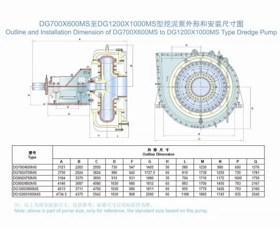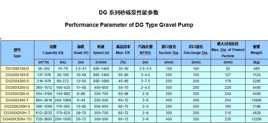 We provide DG series dredge pumps of different types: single stage, single suction or double casing or horizontal designs are all available. The diameter ranges from 100mm to 12000mm, flow rates 60-30000m3/h and heads 10-120m.