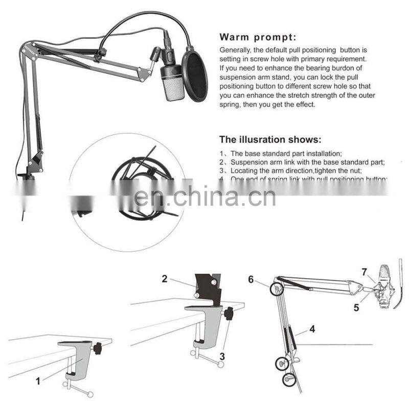 Folding type, convenient to carry. The adjustable arms allow you to carry it with you easily and adjust the suitable angle and height to show your perfect voice.