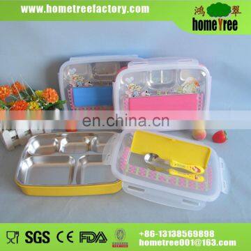 Stainless Steel Kids Bento Lunch Box 5 Compartment Fast Food Tray Plate With Lock Spoon And Fork