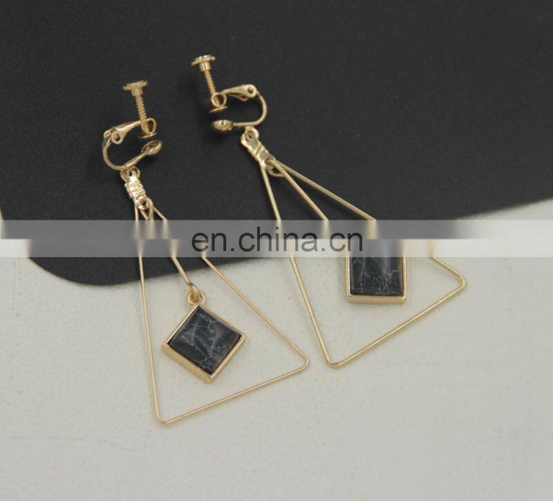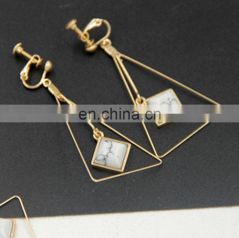 Europe and the United States Fashion Jewelry Triangle Synthetic Green Pine Natural Stone Long Earrings