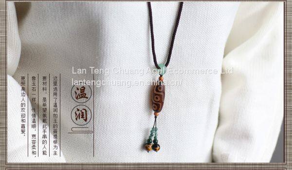 Nine Agate Pendant Necklace Pendant Accessories Simple Retro Vain Long Folk Style Agate Female Sweater Chain