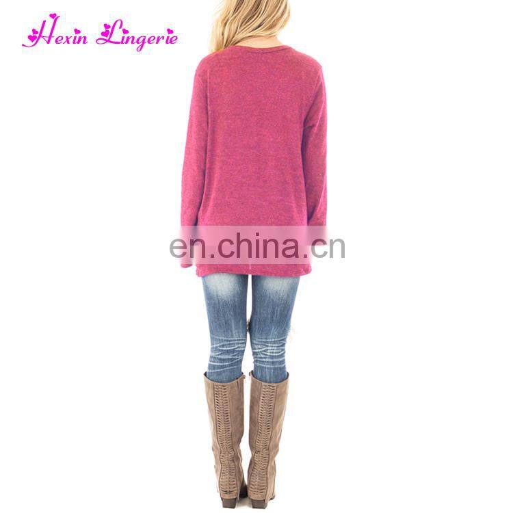 Solid Rose Red Irregular Knot Fashion Ladies Long Sleeve Women Top and BlousesUS$ 5.5 - 6.75MOQ: 2 Pieces