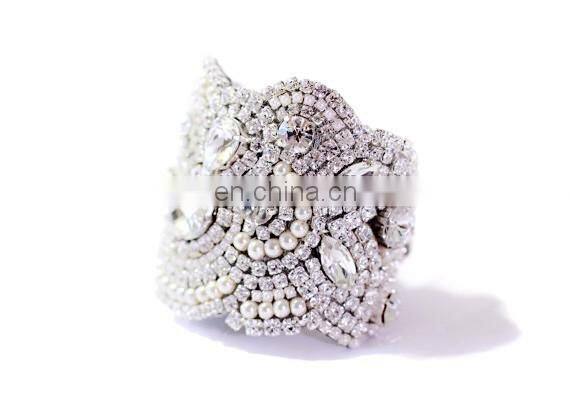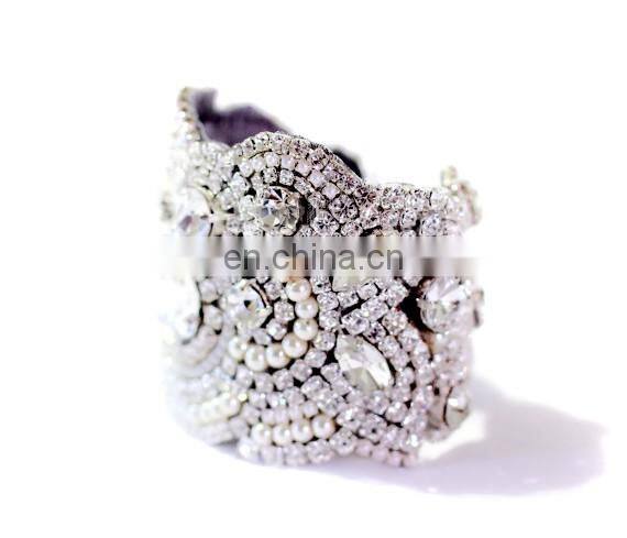 Aidocrystal High quality hand made bridal jewelry white wedding rhinestone cuff bracelet
