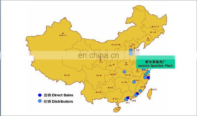 ."Sunrize" brand spandex yarn from 10Dto 1680D in two luster of "semi-dull "and "clear". The products can be applied in warp knitting ,weft knitting and weaving in forms of bare yarn or covered yarn.