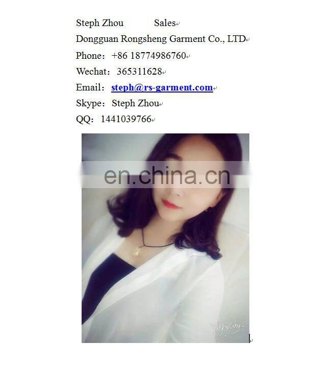 Dongguan Rongsheng Garment Co., LTD is a professional garment manufacturer which located in the China Fashion Capital-Humen Town. It is an advanced private enterprise engaged in the development, production and sales of women fashion garment.