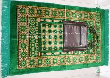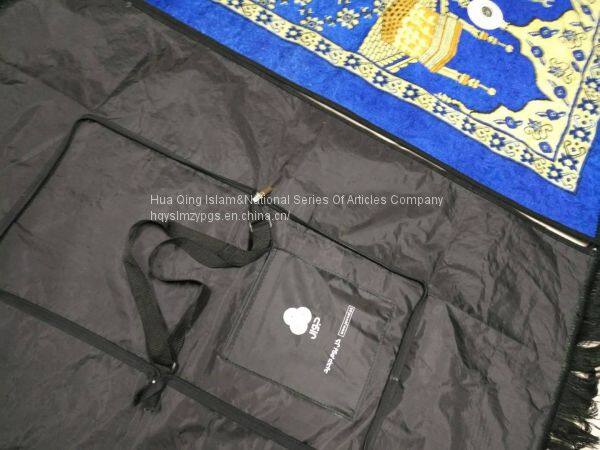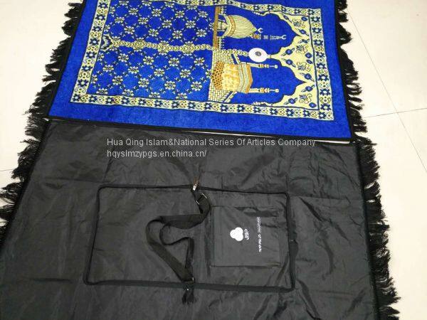 worship blanket bag type Muslim praying mat, PVC waterproof fabric, velvet carpet surface printing, specification: 110cmX65cm, packing: 120 / box. The package can be filled with holy scriptures, worship compass and other religious supplies, convenient, practical, easy to carry.
