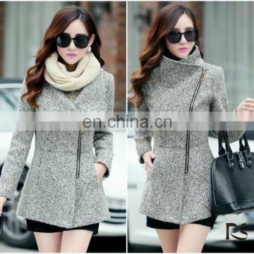 Fashionable Elegant Light Grey Woolen Winter Coat for Woman
