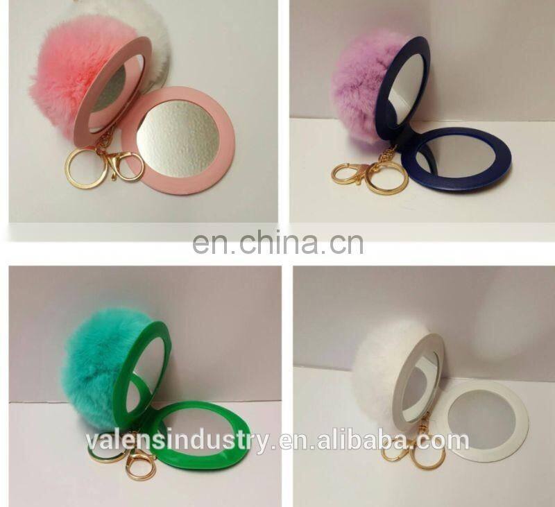 Product Name: Good quality OEM Customized fluffy fur pom pom ball mirror Keychain pom poms Pendant for woman cellphone/handbag/hats/Car