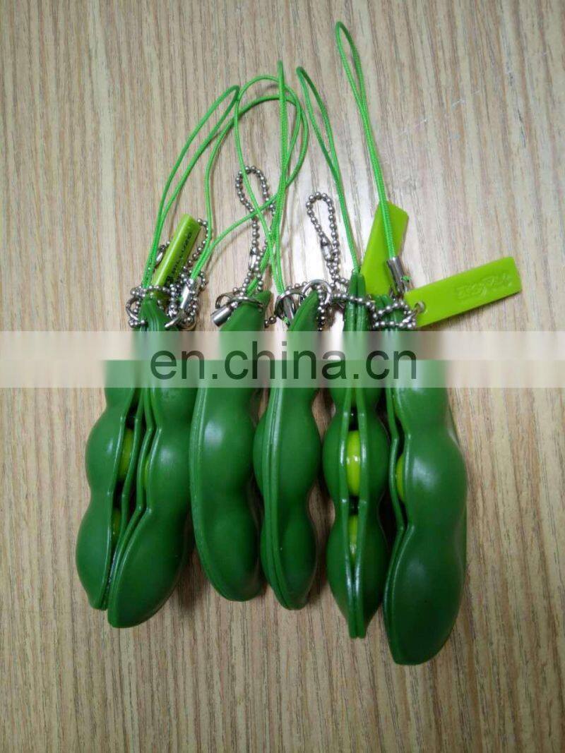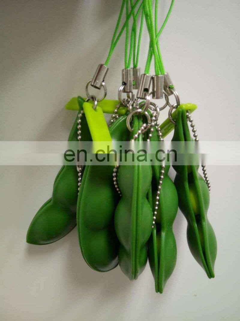 Fidget Toys Squeeze-a-Bean Edamame Keychain Keyring Extrusion Bean Pea Soybean Stress Relieving Chain Phone Pendants fidget bean