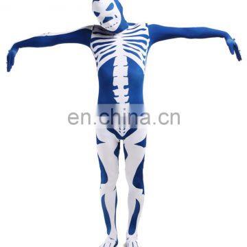 Blue & White Skeleton Nude Suit Tight Zentai Body Spandex Stretch Mens Jumpsuit Adult
