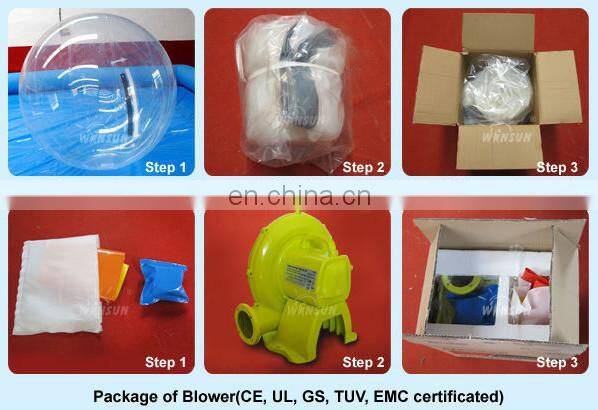 It is included inflatable water ball, blower or pump, repair kits (including the PVC materials, glue, Etc.)