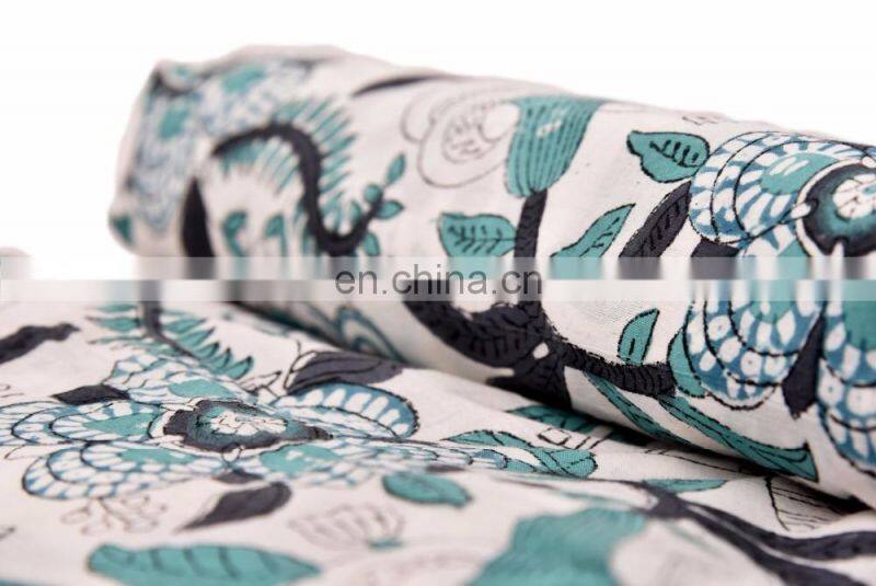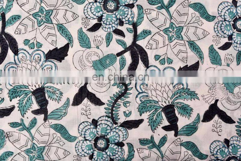 Indian 2017 Hand Block Print Fabric By Meter Floral Sanganeri Fabric For Garments Ethnic Throw Cloth