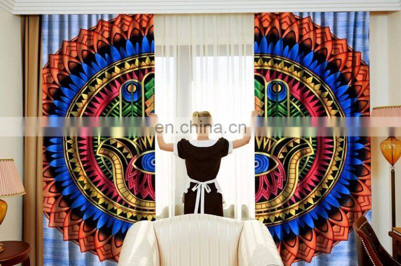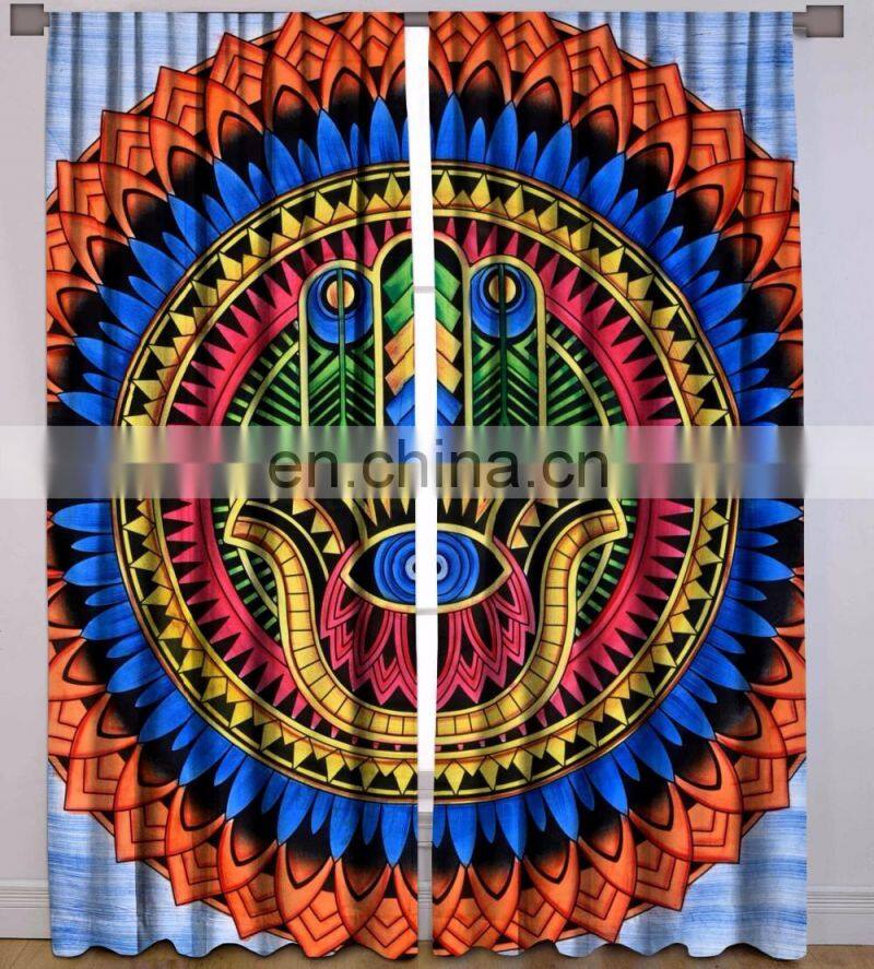 Indian Handmade Hamsa Fatima Mandala Wall Drapery Curtain Set Cotton Boho Drapes Window Decor Curtain Set