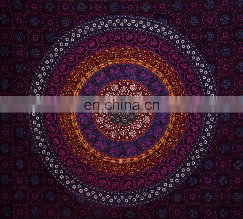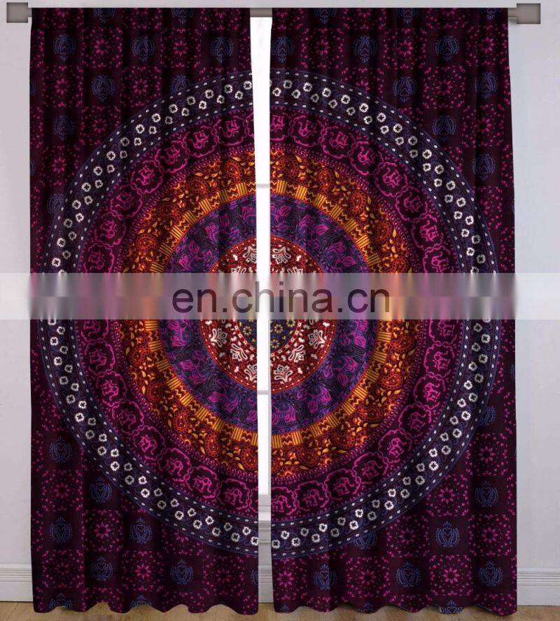 Indian Handmade Elephant Mandala Curtains Cotton Boho Drapes Violet Window Decor Decor Curtain