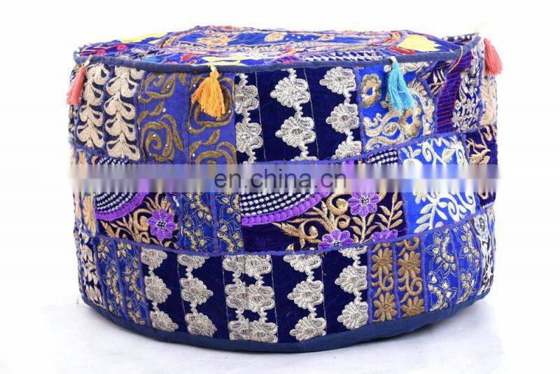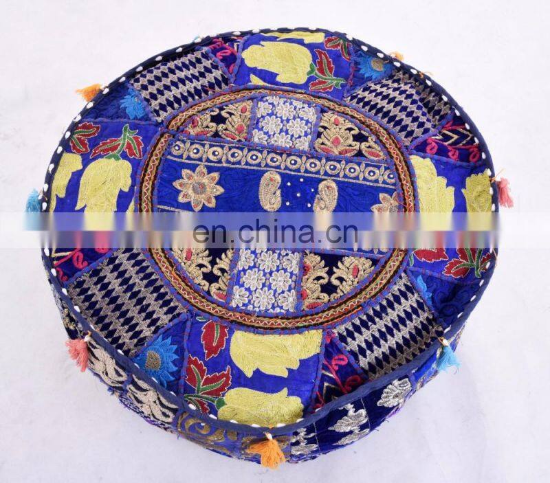 Traditional Indian Patchwork Embroidery Design Ottoman Pouf Cover