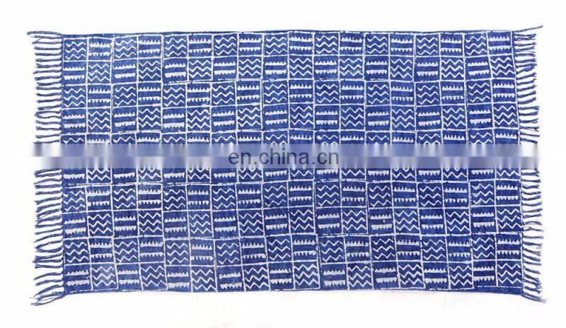 Home Decor Indigo Blue Print Rug Woven Cotton Carpet Bohemian Floor Mat Dari 3X5