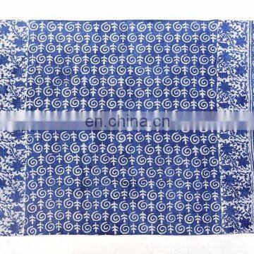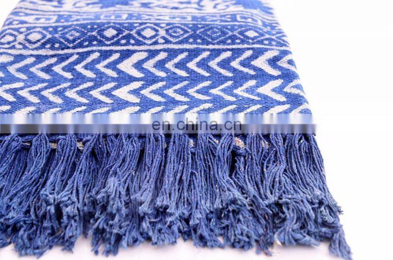 Indian 4 X 6 Ft Indigo Blue Cotton Block Print Accent Area Dhurrie Rug Flat Weave Hand