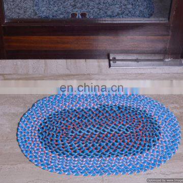 Indian Handmade Braided Door Mat Ethnic Embroidered Multicolored Floor Mat Carpet