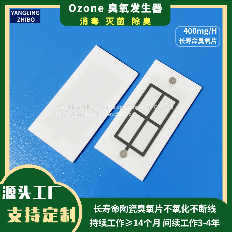Manufacturing process and advantages: Long-life ceramic ozone board is manufactured by the following process. First, a high-melting-point metal (tungsten or molybdenum-manganese) thick film circuit is printed on the Al2O3 ceramic green sheets by screen printing, and the design of the printed pattern and the circuit should be consistent. The two ceramic green sheets printed with the metal circuit were then pressed together by a hydraulic press, the induction electrodes were press-sealed in the middle of two ceramic sheets and sintered for 22 hours in a high temperature hydrogen furnace at 1650 ℃. High-temperature co-fired ceramics Ozone Plates sensing electrode sandwiched between two layers of ceramic, moisture-proof performance, not afraid of oxidation and acid or alkali corrosion, even in low temperature and humidity can work.