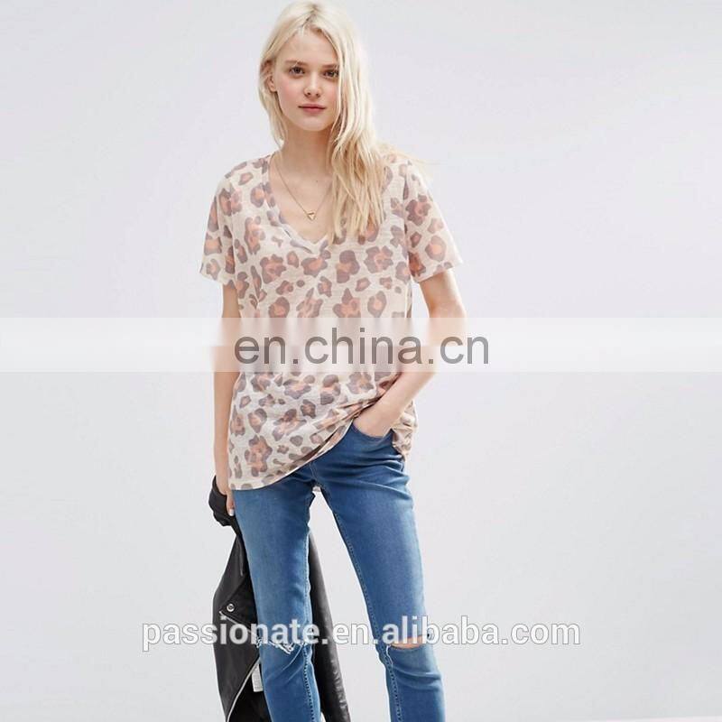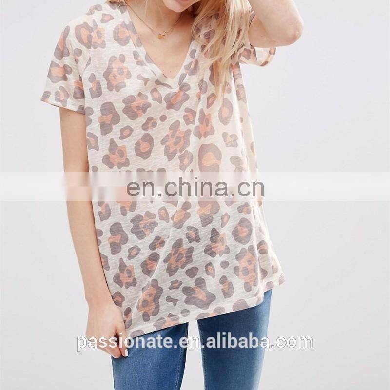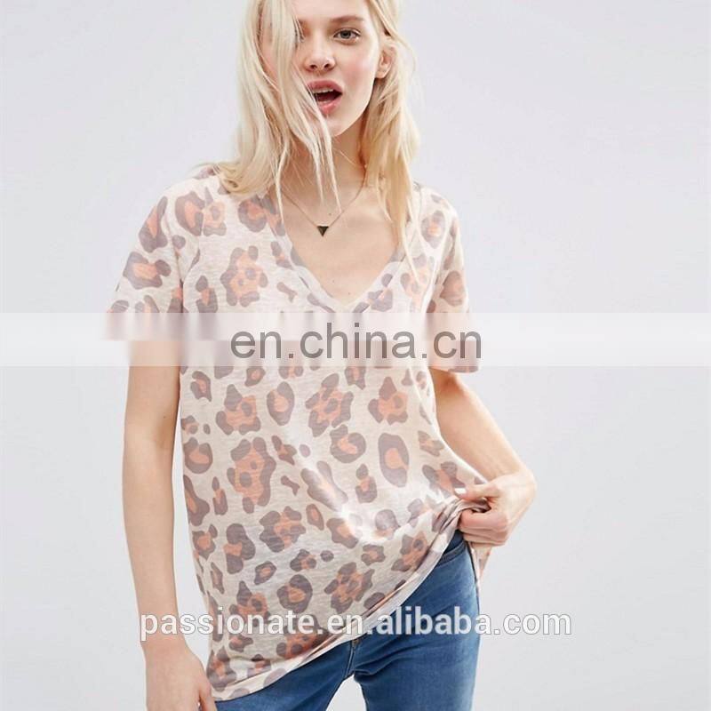Sexy Women Leopard Animal Print Longline v Neck t Shirt