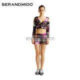 Bare-midriff Dylan Women Breathable Fit Digital Printing Sexy Casual Fitness Shorts&Tops Suit
