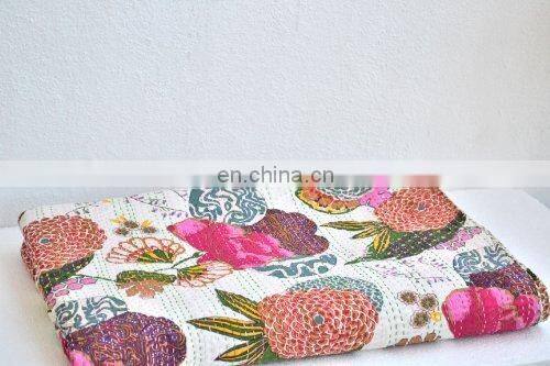 This new completely handmade Floral Printed kantha quilt is made of 100% pure soft natural organic cotton with screen printed by natural vegetable color dyes