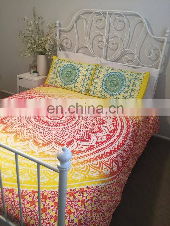 Home > Products > MANDALA BEDSPREAD > Indian Mandala Doona / Duvet Cover Ombre Printed Queen Bohemian Quilt Cover With 2 Pillow Covers