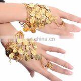 BestDance New Lady Belly Dance Performance Gold Coins Bracelet Link Metal Ring To Wrist Bracelet Bangle