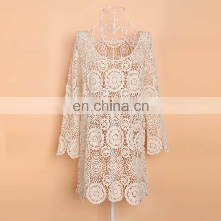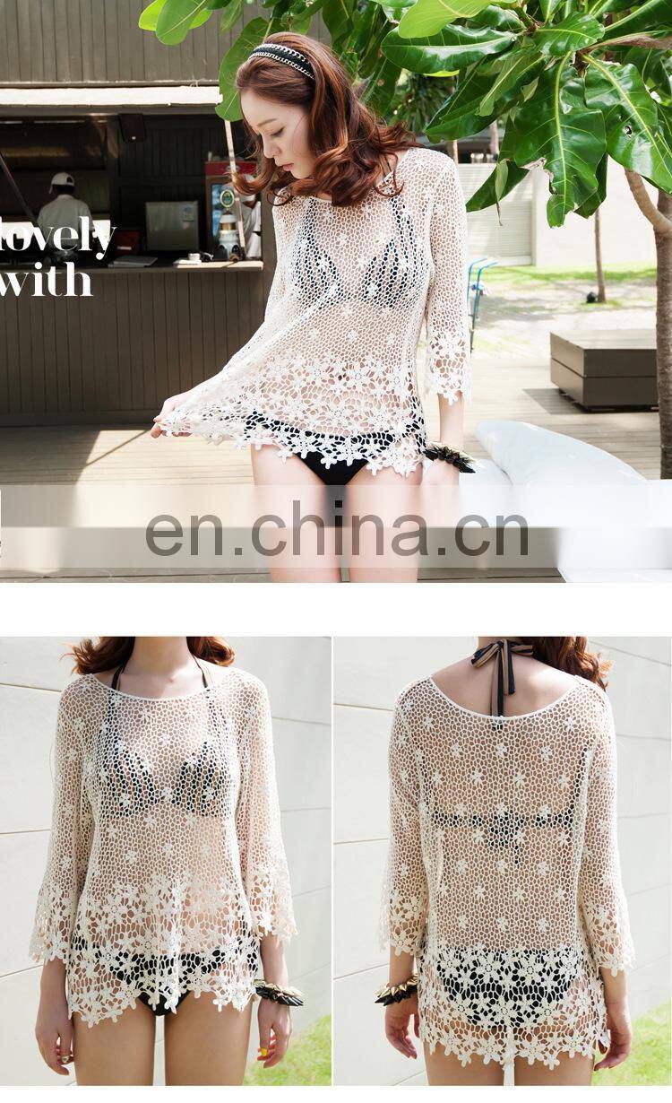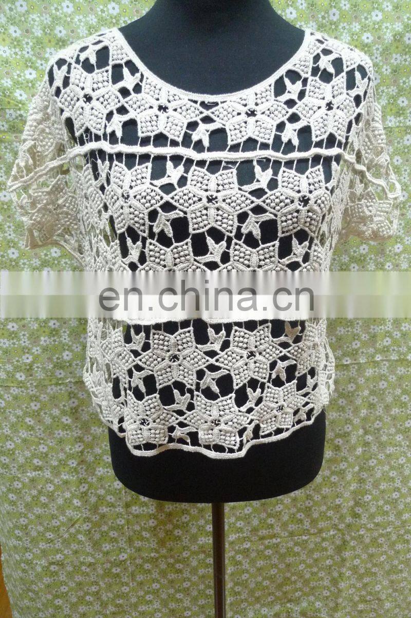 Fashion Cotton Emboridered Blouse Crochet Hollow Blouse With Flower