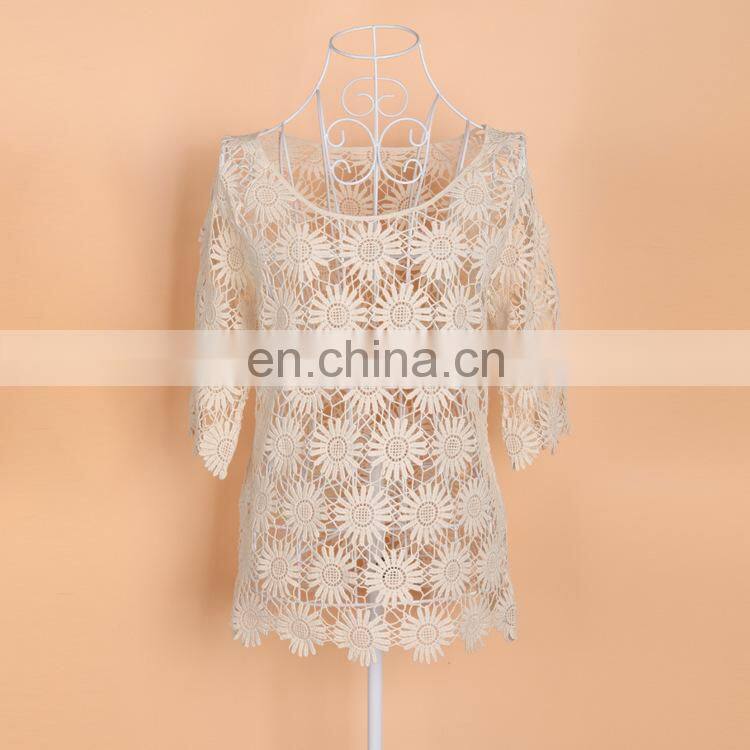 Fashion Bat Sleeve Girl Lace Blouse/vest /cover-up Top White Sheer Lace Elegant Lace Tops for Ladies