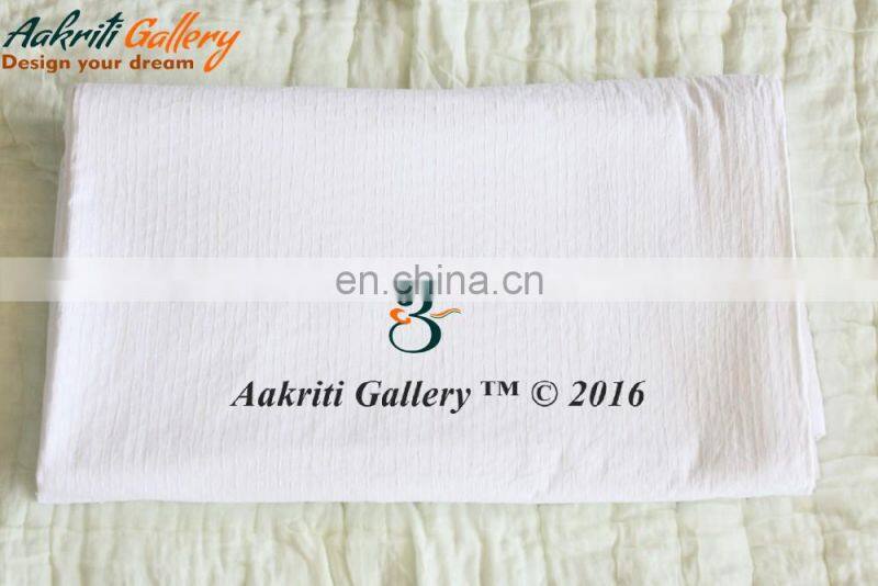 Double Plain Kantha Bedspread Quilt Throw Indian Rajasthani White Color Handmade 100% Cotton Fruit Printed Bedsheets