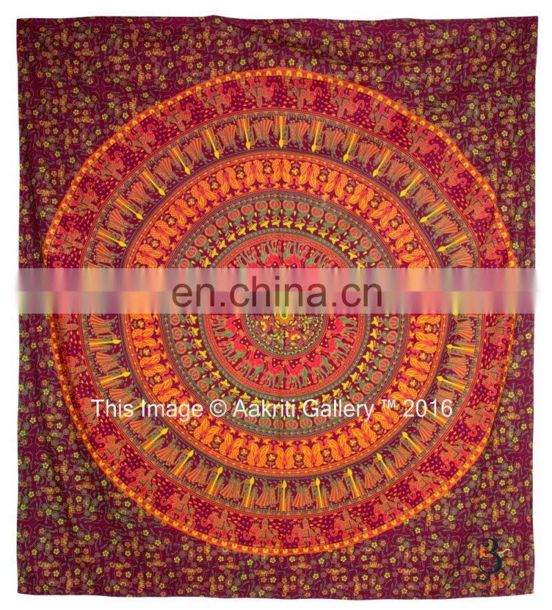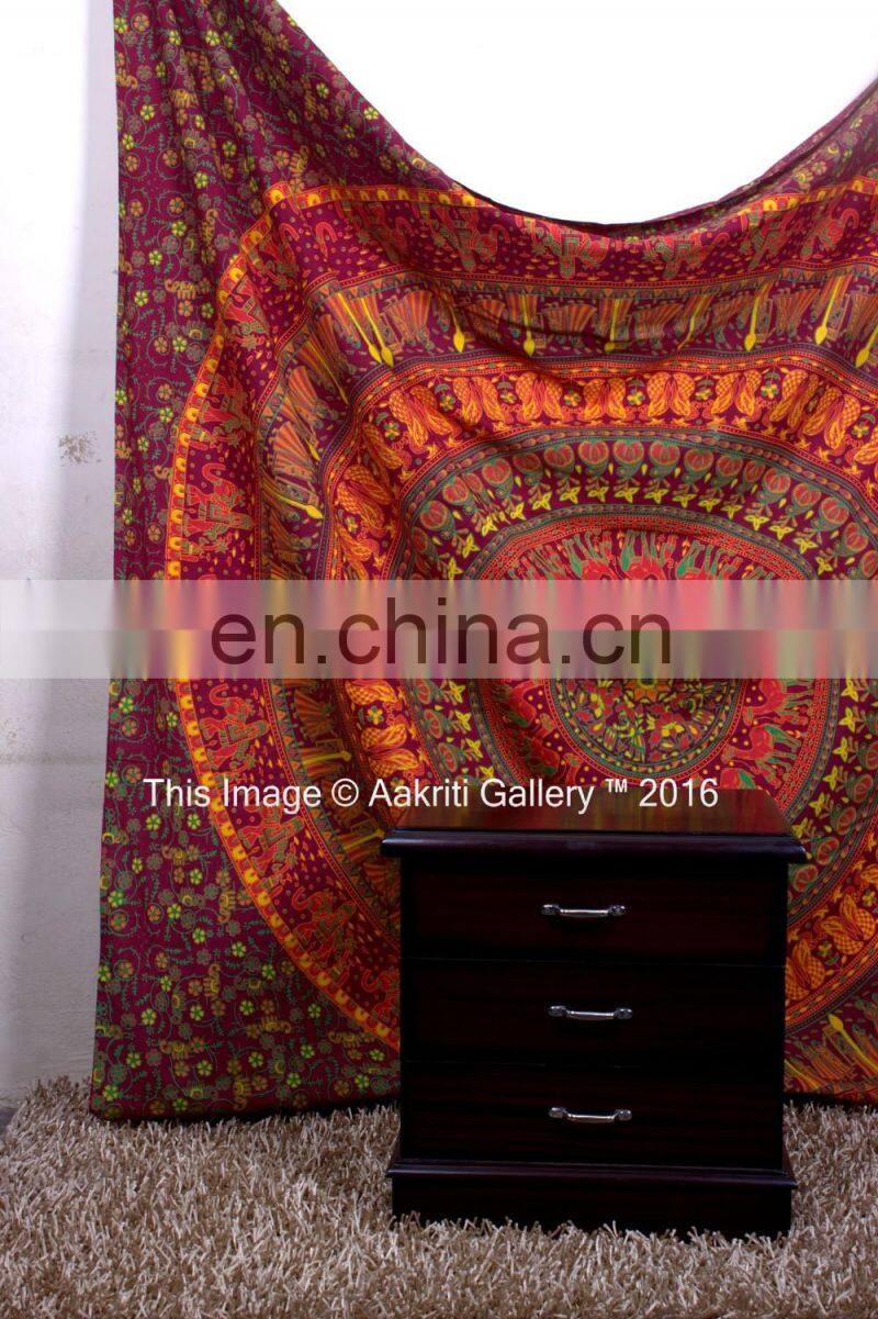 Maroon Color Barmeri Mandala Bhala Design Tapestry Double Indian Handmade Tapestry 92x82 Indian Tapestry