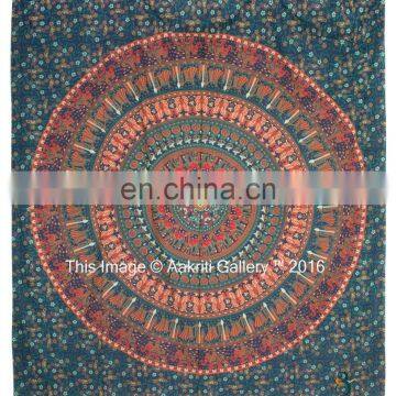 Green Color Barmeri Mandala Bhala Design Tapestry Indian Double Handmade Tapestry for Sale 92x82 Tapestry