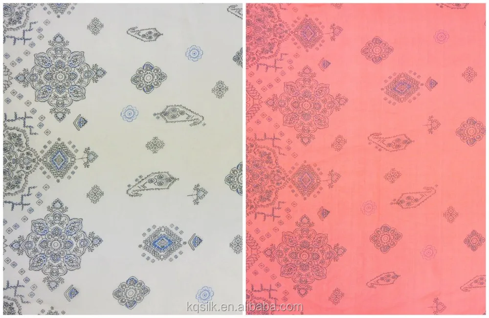We can print them on fabrics you want: silk satin, silk chiffon, silk CDC...silk blend fabric, rayon or other fabrics.