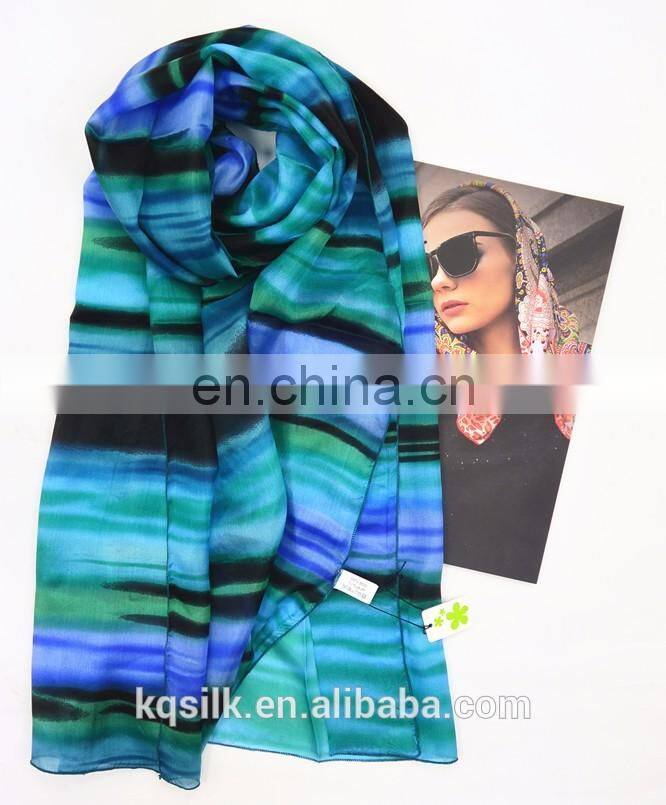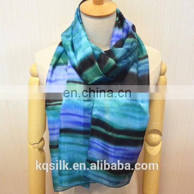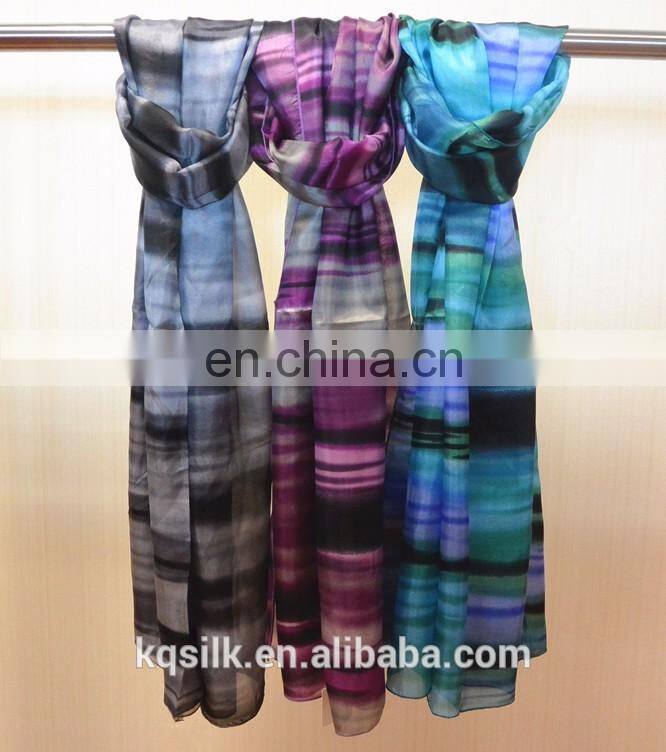 Stock Lot 100% Silk Long Stripe Colorful Paj Screen Printing Habotai Silk Scarves