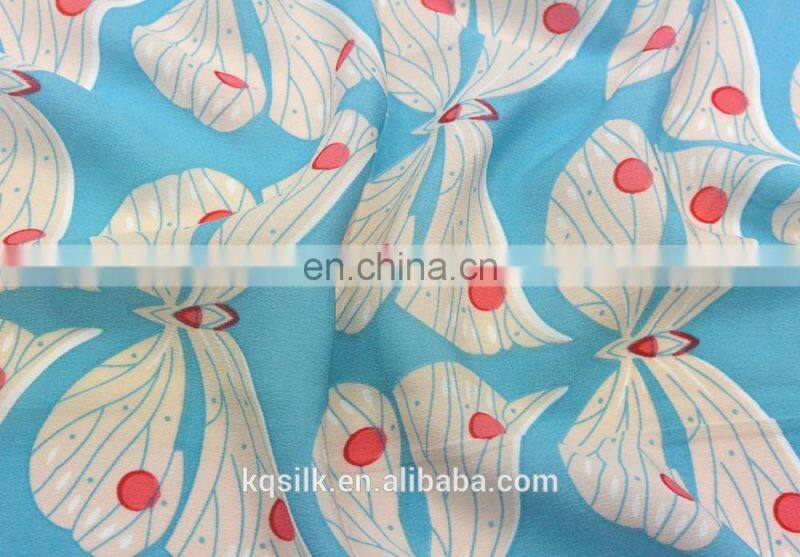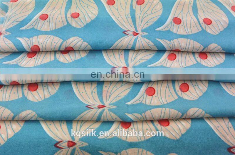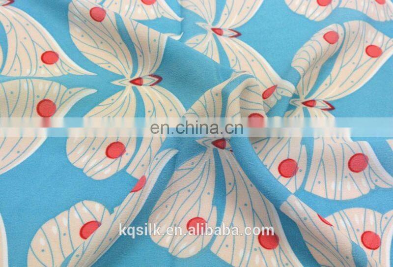This is Butterfly screen printed Skin-friendly pure silk crepe de chine fabric crepe fabric