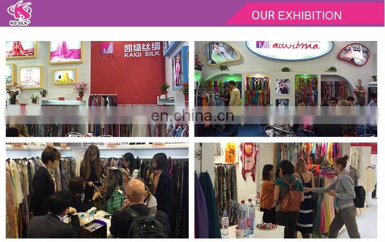 We can print the design on fabrics you want: silk satin, silk chiffon, silk CDC...silk blend fabric, rayon or other fabrics.